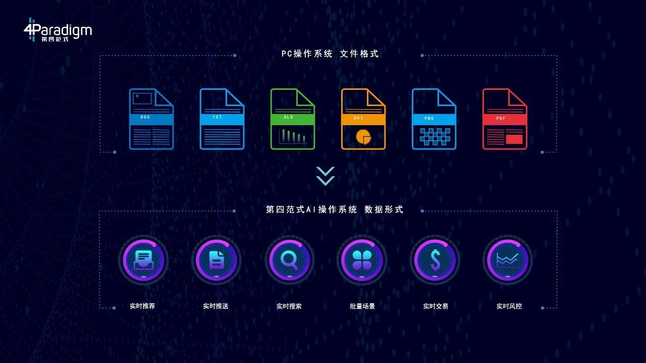 效率的提升、效果的保障往往离不开标准的构建。Sage AIOS首先解决的是AI标准化问题。由于构建AI应用的数据形式没有标准,数据治理占据着AI应用过程中95%的时间。因此,第四范式率先提出“数据形式”理念,如同Windows通过PPT、DOC、PNG等“文件格式”将乱码的文件标准化一样,规定了数据的来源、使用以及流转方式,满足数据在业务层、IT层及AI层的各类要求,让数据治理环节的效率提升90%以上。
