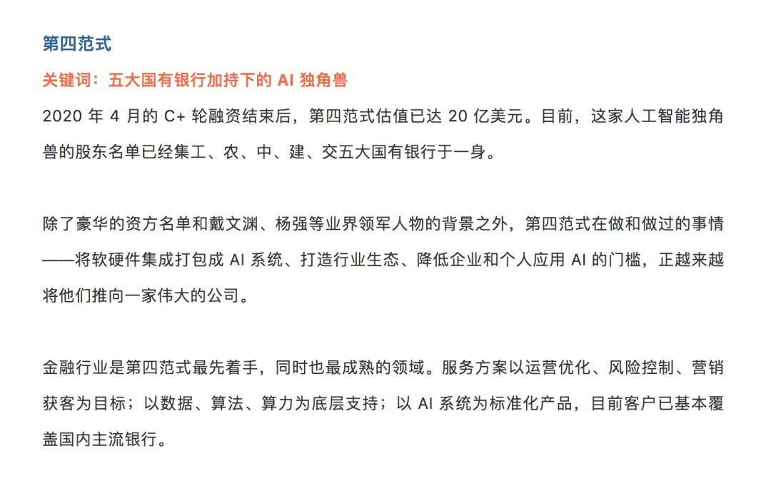 "第四范式在做和做过的事情——将软硬件集成打包成 AI 系统、打造行业生态、降低企业和个人应用 AI 的门槛,正越来越将他们推向一家伟大的公司。"——CB Insights